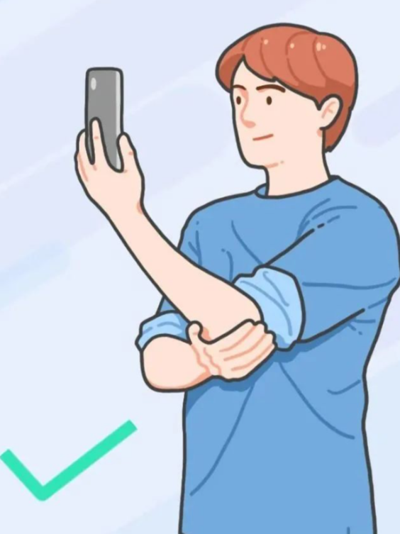 站姿时,可以采取“奥特曼式”,用一只手支撑住另一只手,将手机抬高至眼睛高度,可以有效减少颈部肌肉劳损。