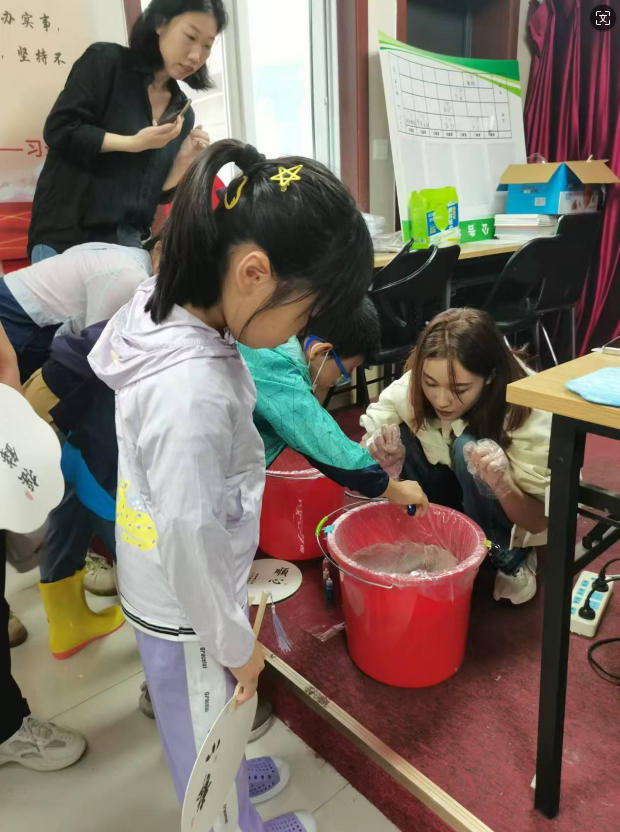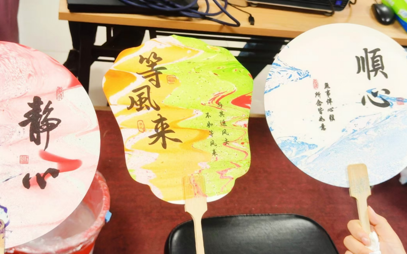活动现场,老师深入讲解了色彩心理学的寓意和应用。每一位青少年都发挥了自己的想象力,创作出属于自己独一无二的漆扇。漂漆是借用水面的纹理,所绘图案形状温柔圆和又连绵不断,颜色或清新淡雅或艳丽夺目。制作过程中青少年不仅能够学习到漆扇的制作技艺,还能够体会到非遗文化的独特魅力。