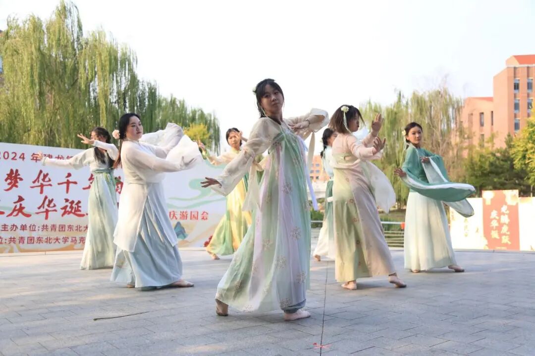 9月28日,建龙钢铁校园文化艺术节“风雅梦华千年韵,欢庆华诞共此时”主题国庆游园会在浑南校区小南湖畔举行。活动由东北大学团委主办,马克思主义学院团委承办。
