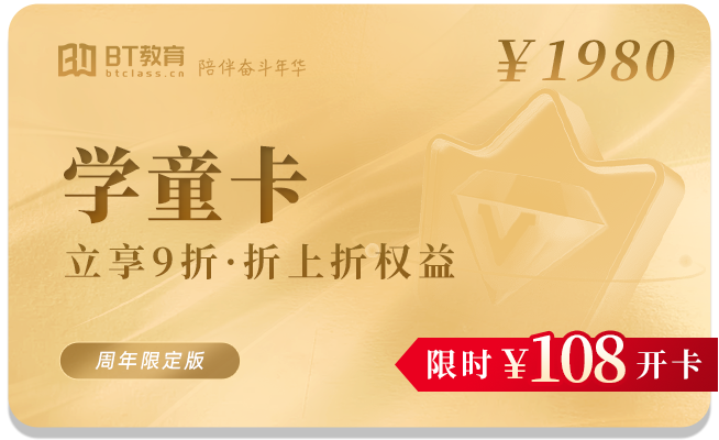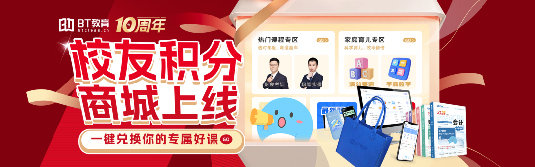 根据课程价格,640元团660B豆,不限量团B豆↓↓↓注意:充值的B豆仅用于在 BT教育官网/APP 购买课程、教材,不能用于提现或转账。不支持转让、赠送、代付。月底涨价遇十周年庆,老学员十年累积消费,一次返还积分!0元兑换好礼这些积分可以在BT教育积分商城兑换部分课程、教材、B豆及一些有用的实物商品。欢迎大家积极领取、兑换积分!