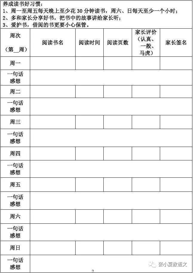 1.阅读习惯:每天坚持阅读15——30分钟,填写《暑期“每日阅读”记录表》。