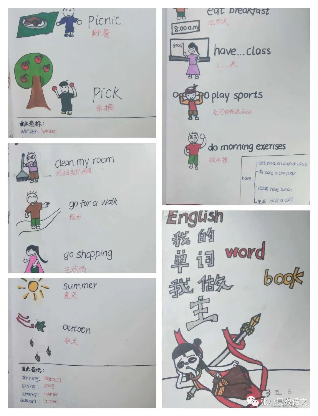 1.创编“英语词汇手册”。鼓励学生收集整理已学过的不同主题的词汇,采用图文结合方式自编词汇手册。