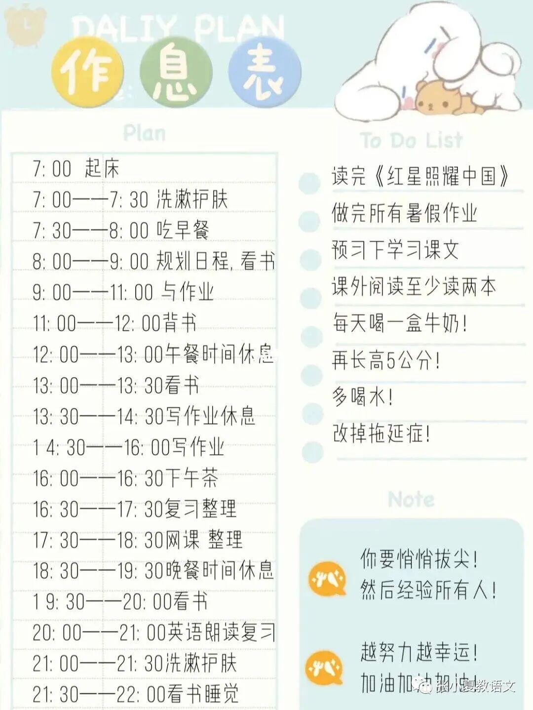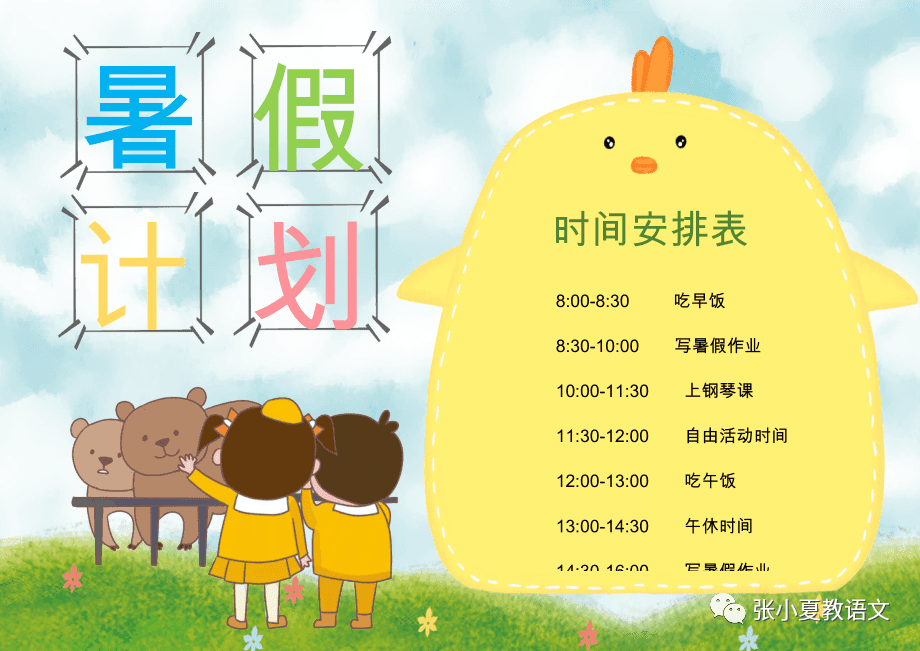 暑假正是读书时!我要充分利用暑假时间,多读书,读好书,读整本书,养成良好的读书习惯,积累整本书阅读的经验。