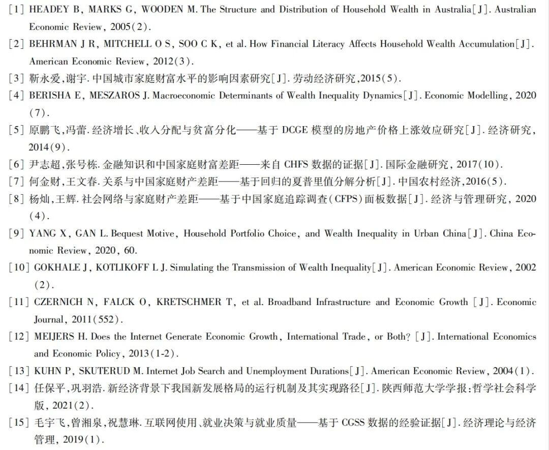 刘雪颖.互联网使用对家庭财富积累与分配的影响 —— 基于中国家庭追踪调查(CFPS)面板数据的经验研究.陕西师范大学学报:哲学社会科学版,2023,52(4):92-104.