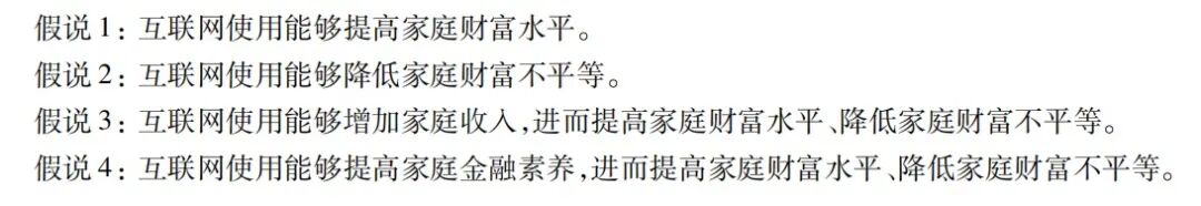 通过运用中国家庭追踪调查(CFPS)面板数据,本文考察了互联网使用对家庭财富积累与分配影响,基于以下两点提出假说。