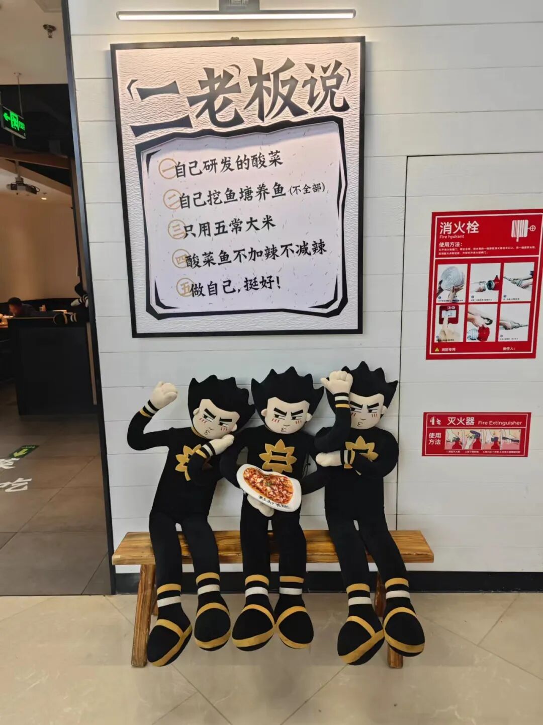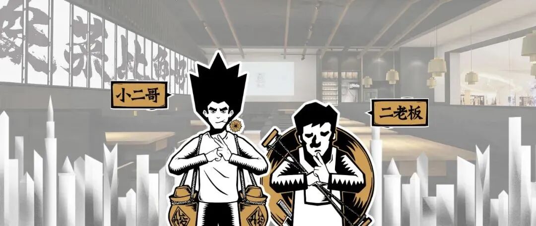 从品牌文化到门店设计,太二酸菜鱼都散发着一种格格不入的味道。创造“二”文化与“二”形象,将漫画形象小二哥、二老板作为文化输出的窗口;打出“酸菜比鱼好吃”的口号,挑战消费者认知;门店身处购物中心顶层,却大胆使用黑白配色,在一众“彩色”门店中脱颖而出。