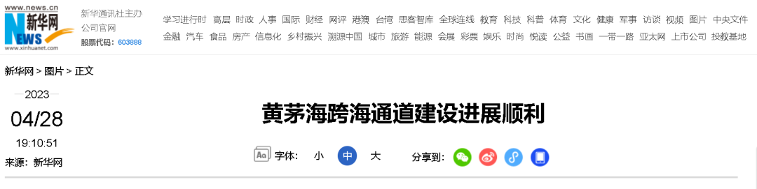 新华网4月28日报道,目前,中铁十一局承建的黄茅海跨海通道工程江门台山段赤溪东互通、互通至狮山隧道主线路基和预制箱梁已完成总工程量的80%以上。黄茅海跨海通道横跨珠江口崖门入海口黄茅海水域,连接珠海高栏港和江门台山,线路全长约31公里,预计2024年建成通车。