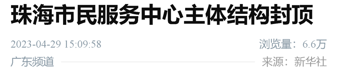 新华社、南方+客户端报道,4月28日,由中建三局一公司承建的珠海市民服务中心项目实现主体结构封顶。项目建成后将解决企业和群众对政务服务“一站式”办理的需求,打造政务服务新标杆。