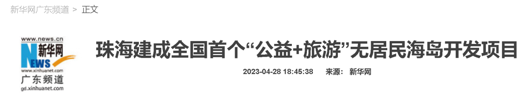 新华网、中新网、南方+客户端、触电新闻客户端报道,全国首个“公益+旅游”无居民海岛开发项目——长琴国际音乐岛,于今年“五一”期间正式对外开放。该岛将致力于打造成集音乐文化、科普教育、主题体验、海上运动和休闲度假于一体的海岛旅游综合体及粤港澳大湾区时尚文化旅游目的地。