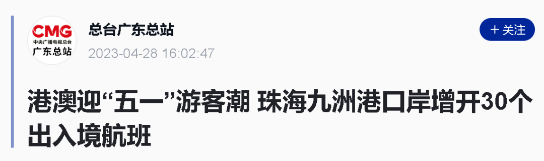 南方网、澳门日报报道,横琴粤澳深度合作区应对“五一”假期出游高峰,推出“超级水母节”“星光夏日嘉年华”等多项文旅活动吸引游客,助推文旅行业加快复苏。据了解,合作区已开通17条常规运营公交线路,覆盖岛内各片区,其中有14条公交线路经停横琴口岸,更加便利口岸出境人员前往横琴各个片区或景点。