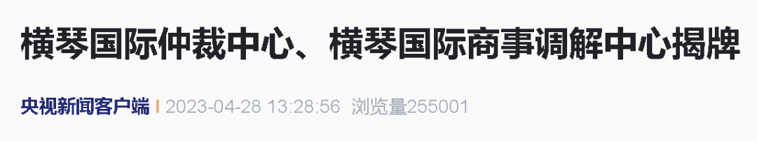 央视新闻客户端、中新社、广东卫视《广东新闻联播》、南方网报道,4月28日,横琴国际仲裁中心、横琴国际商事调解中心正式揭牌。横琴国际仲裁中心的建立有利于探索民商事法律制度衔接澳门、接轨国际的具体措施,为当事人在合作区自主选择横琴或澳门的仲裁机构解决纠纷提供便利。而横琴国际商事调解中心则有利于在琴澳两地完善国际商事审判、仲裁、调解等多元化商事纠纷解决机制,打造市场化、国际化、法治化的优质营商环境。