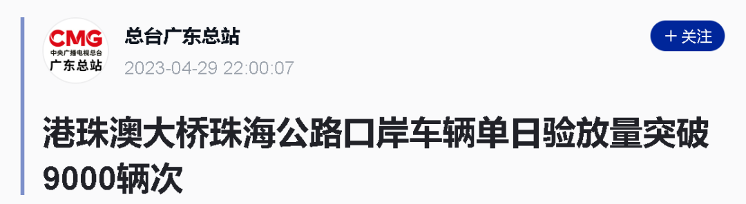 央视新闻频道报道,“五一”假期期间,国家移民管理局珠海边检站总站所辖各旅检口岸会不同程度迎来客流高峰,预计假期内日均从珠海拱北、港珠澳大桥、横琴、青茂、湾仔、九洲等对港对澳旅检口岸的出入境人员将超50万人次。