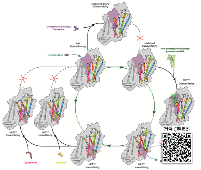| 科学家揭示去甲肾上腺素转运体转运机制及小分子和多肽类药物的结合模式 |