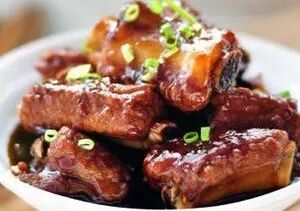 午餐:杂粮米饭、红烧仔排、山药炒莴笋、菌菇西红柿汤