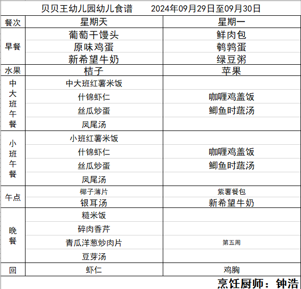 第五周食谱