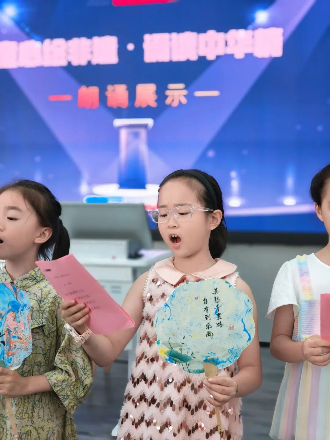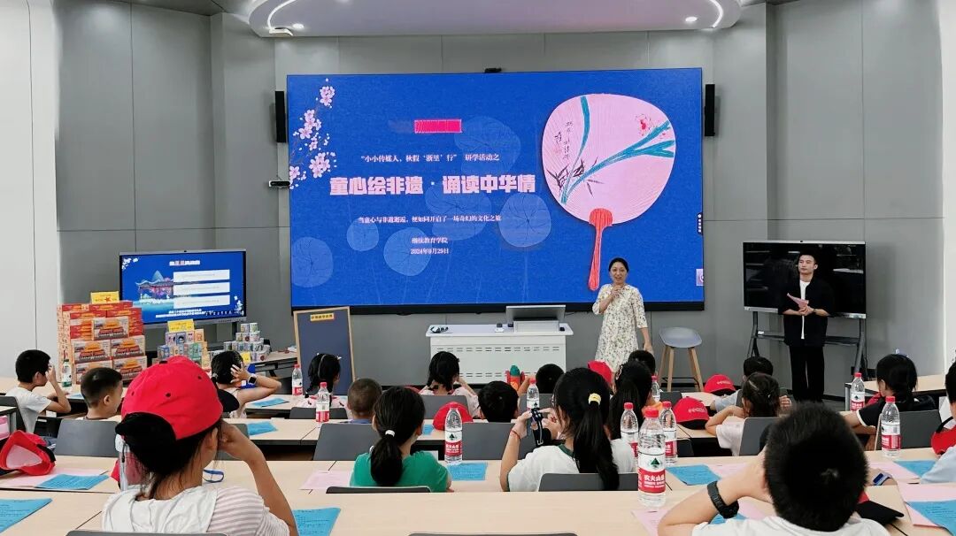 阳光明媚的上午,我们顺利开启了这场别开生面的研学之旅——探索科技与电竞魅力。在志愿者的带领及讲解下,小朋友们参观了演播楼B区的4K电竞综合实验室,了解到最前沿的技术与设备。“光影交织共欣赏”活动中,小朋友们体验了五光十色、绚丽多彩的灯光秀,并观看动画片《小鸡彩虹》。这部动画片以其生动的故事情节和鲜明的角色形象,深受大家的喜爱。除此之外,小朋友们踏入了充满科技感的虚拟演播室,亲身体验了一回成为虚拟小主播的奇妙之旅!借助绿幕技术,他们惊叹地看到自己的身影被巧妙地融入到一个个栩栩如生的虚拟场景之中,仿佛真的置身于新闻直播间。秋高气爽的下午,一场充满传统文化韵味的非遗文化体验活动正式开展。小朋友们亲手触摸到非物质文化遗产的精髓,听国家二级心理咨询师、中华文化高级讲师汤虹讲述作品背后的故事,并亲自体验制作过程,感受传统文化的无限魅力!小朋友们在老师的指导下,进行漆扇制作体验,他们亲手调制漆料,尝试不同的上色技巧,制作出属于自己的漆扇。播音专业的带队人员围绕传统文化和爱国主题为“小小传媒人”们讲授“诵读体验课程”,带领小朋友们朗诵《你要写中国》。小朋友们在大舞台上勇敢展示自己,饱含深情的朗诵!我们还设立了有奖问答环节,小朋友们热情的参与其中,都拿到了心仪的礼物。