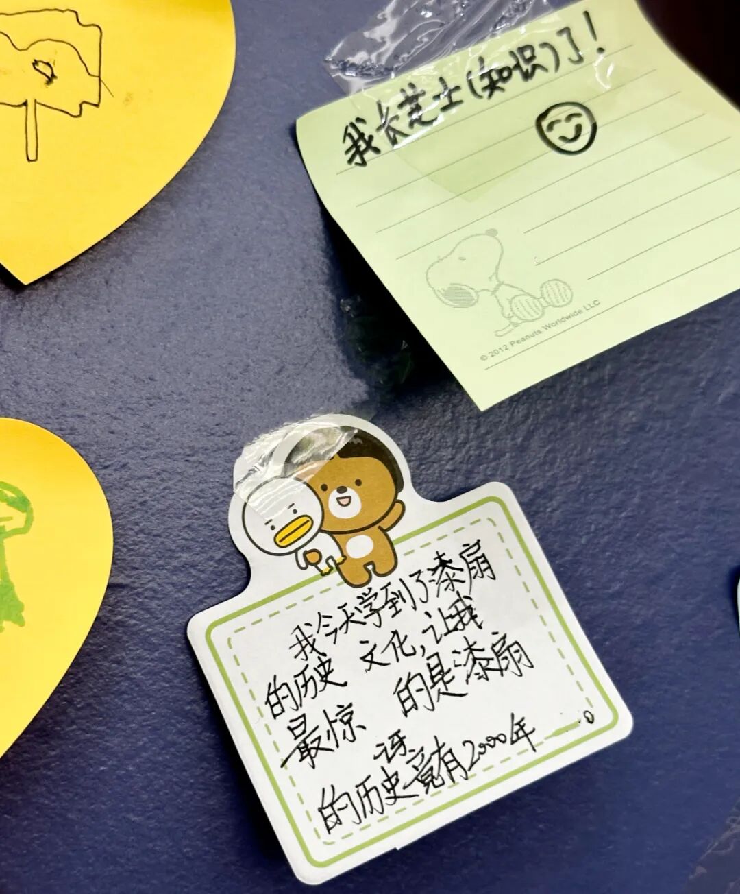上午场和下午场活动结束时,工作人员都引导“小小传媒人”们回顾了自己半日的体验,邀请他们在便签纸上记录下自己的感受、学到的新知识和最喜欢的活动瞬间,还鼓励他们自愿分享便签内容。进一步增强了彼此的交流和友谊,为活动画上了一个圆满的句号。最后,以文末彩蛋的形式,我们一起欣赏“小小传媒人”们的精彩话语吧,留给我们的是温暖的感动和难忘的回忆!