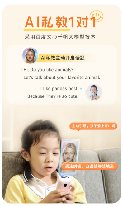K9接入的百度文心新千帆大模型,它是国内最大最先推出的AI大模型,对比其他家听力机接入自研的GPT,技术更好,不过接入费用极高,也只有倾听者才愿意下血本,让孩子体验到更成熟的AI大模型。