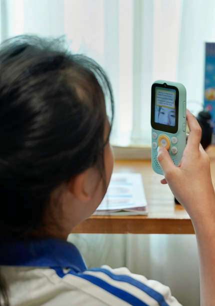 采用了亲肤手感的材质,2.41寸的高清触控屏,搭配极简按键,孩子操作易上手,听音频时方便盲按盲听,保护孩子眼睛。