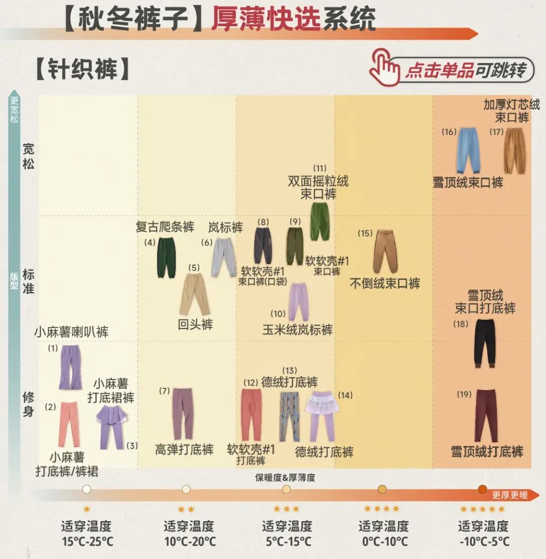 因为其实选裤子一直都是让妈妈们头疼的问题,但自从幼岚推出厚度体系后,就能轻松根据温度选择孩子要穿哪一条裤子。