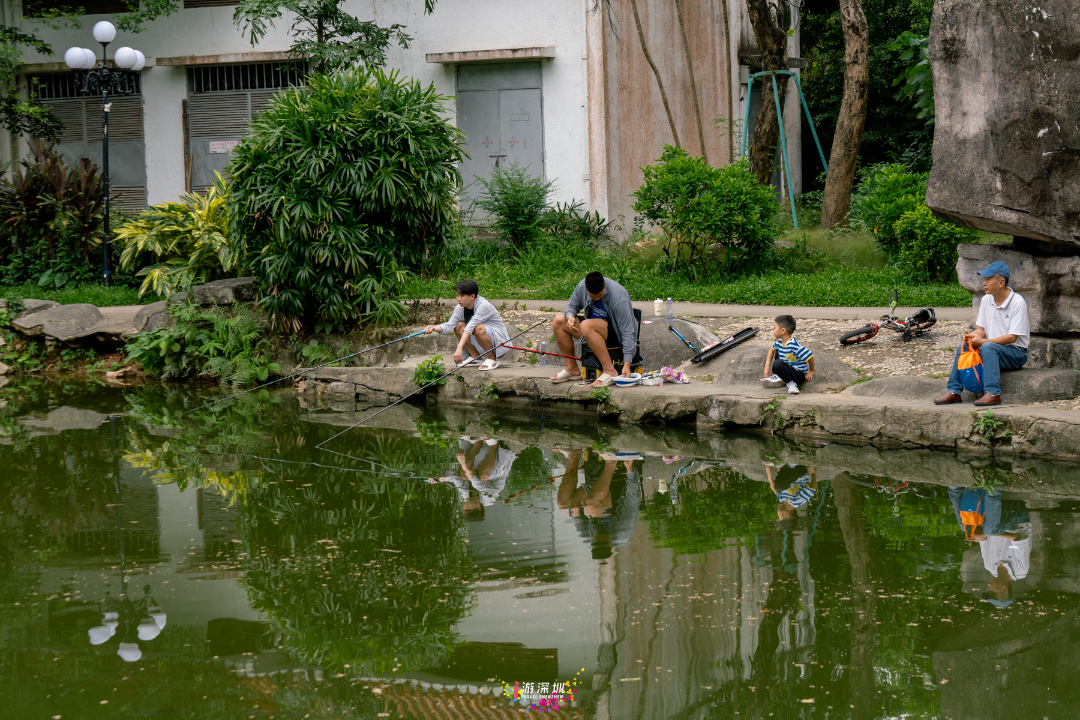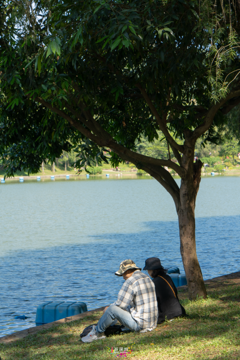 既然已经向东边出发,那么索性再往东走,来到深圳这座有58年历史的公园,东湖公园。这里不仅有在草地上躺平的人们,还有悠闲的垂钓者。