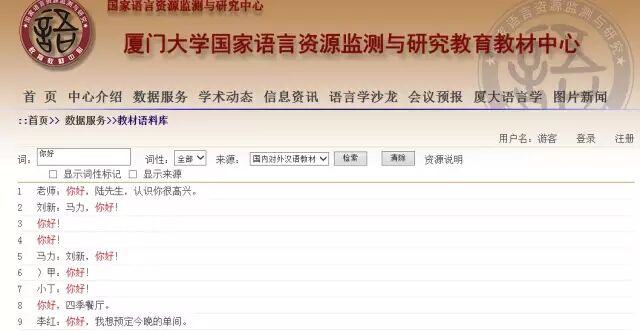 “对外汉语教材语料库”来自厦门大学国家语言资源监测与研究教育教材中心的语言监测课题,是关于对外汉语教材的专门性语料库。 核心语料包括12套有代表性的国内对外汉语教材,涵盖长期、短期、口语等方面。对语料做了机器分词和词性标注,精加工版做了人工校对。提供在线字符串和词检索检索功能,支持“正则表达式”。