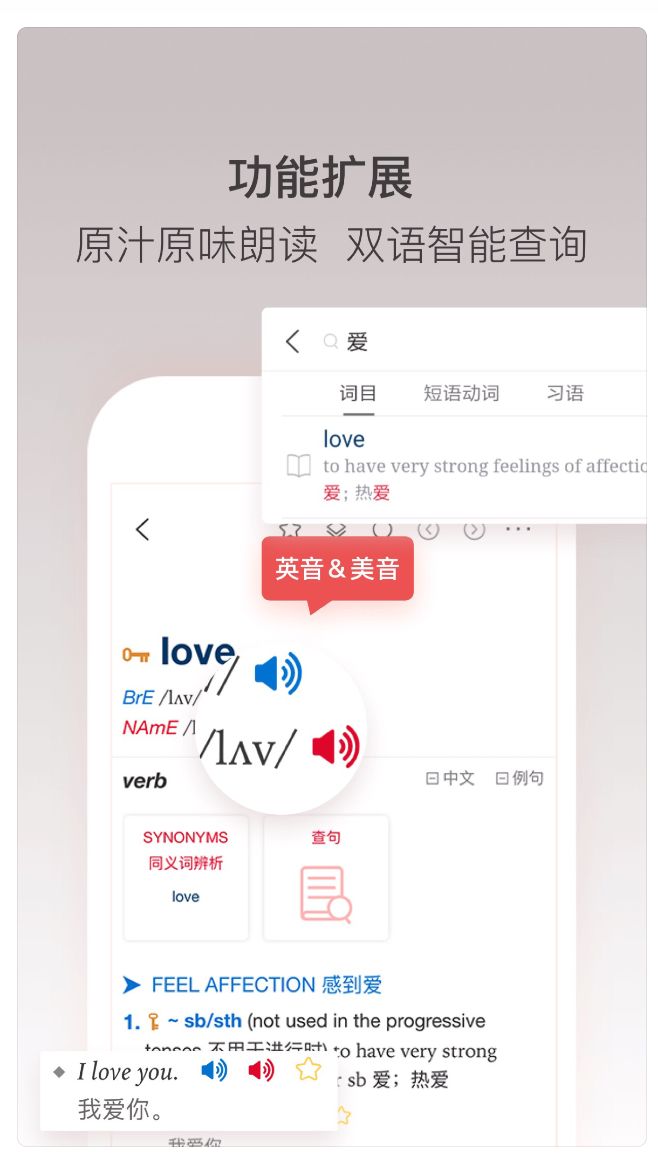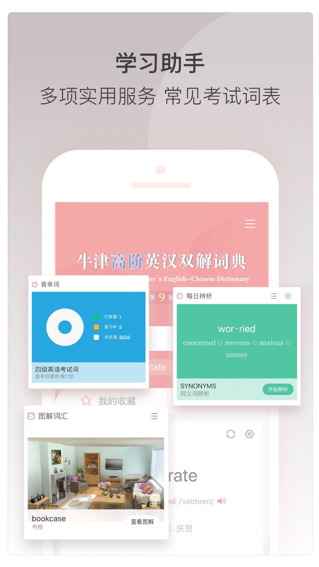 《牛津高阶英汉双解词典》(第9版)APP版主要功能有: