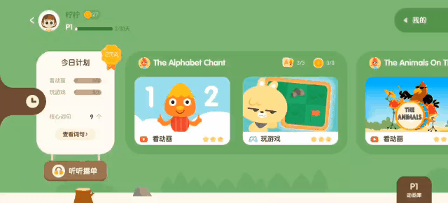 之前有用户反馈,成长计划里的动画孩子不感兴趣,新的成长计划除了可以修改学习计划外,还可以换孩子喜欢的动画,这样孩子们可以在适合的水平范围内,挑选喜欢的动画来学习,更灵活了。