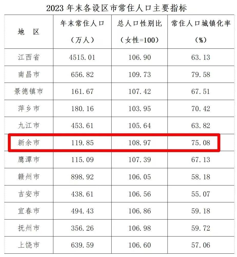 2023年江西省常住人口