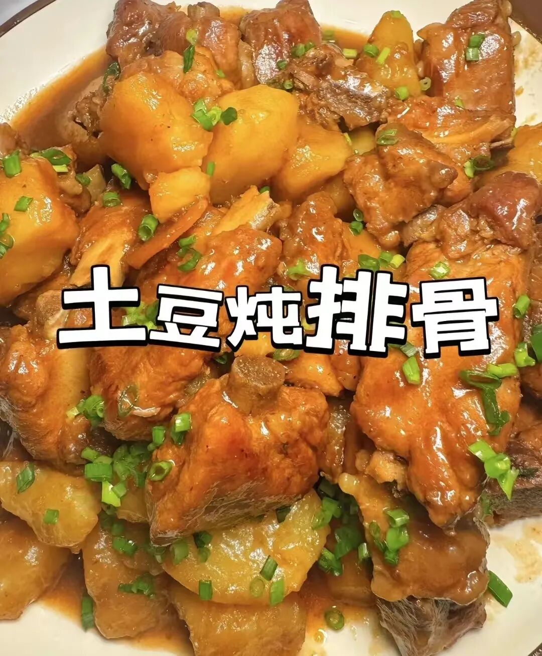 红烧排骨、油渣莲白、瘦肉土豆丝、青菜豆腐汤