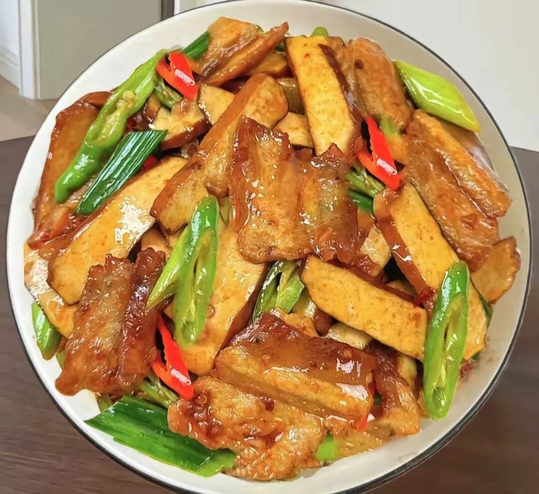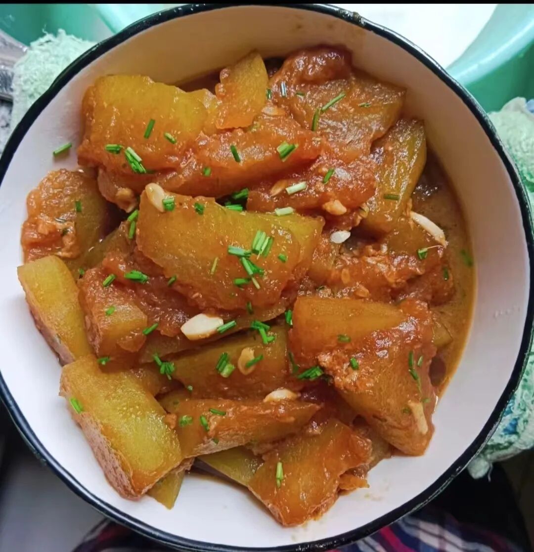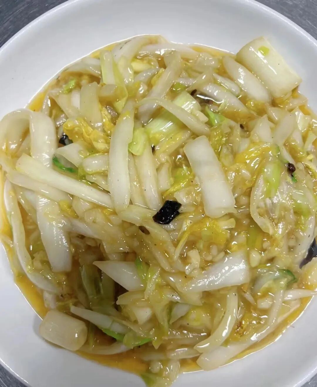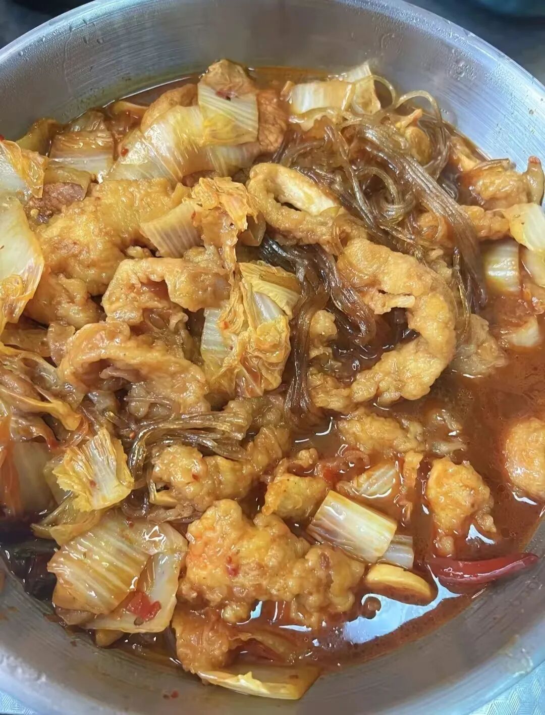 酥肉烩粉条、油渣冬瓜、炒黄秧白、番茄丸子汤