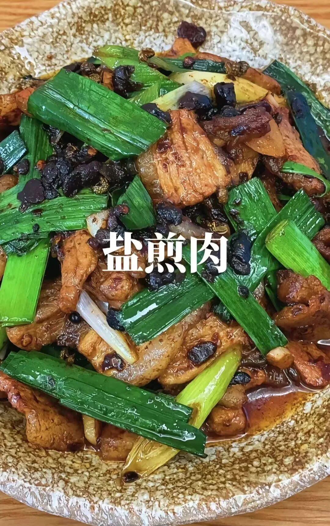 盐煎肉、肉沫花菜、炒黄秧白、紫菜鸡蛋汤