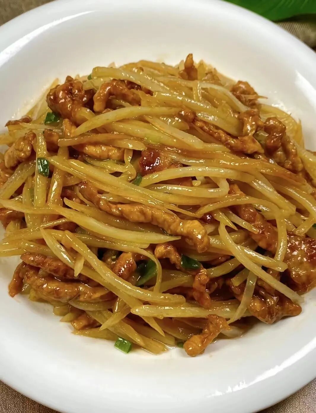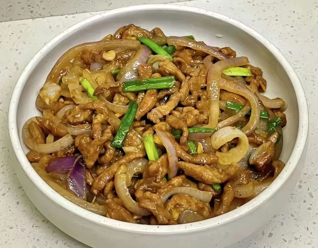 洋葱炒肉丝、肉末土豆泥、番茄炒鸡蛋、山药鸡汤