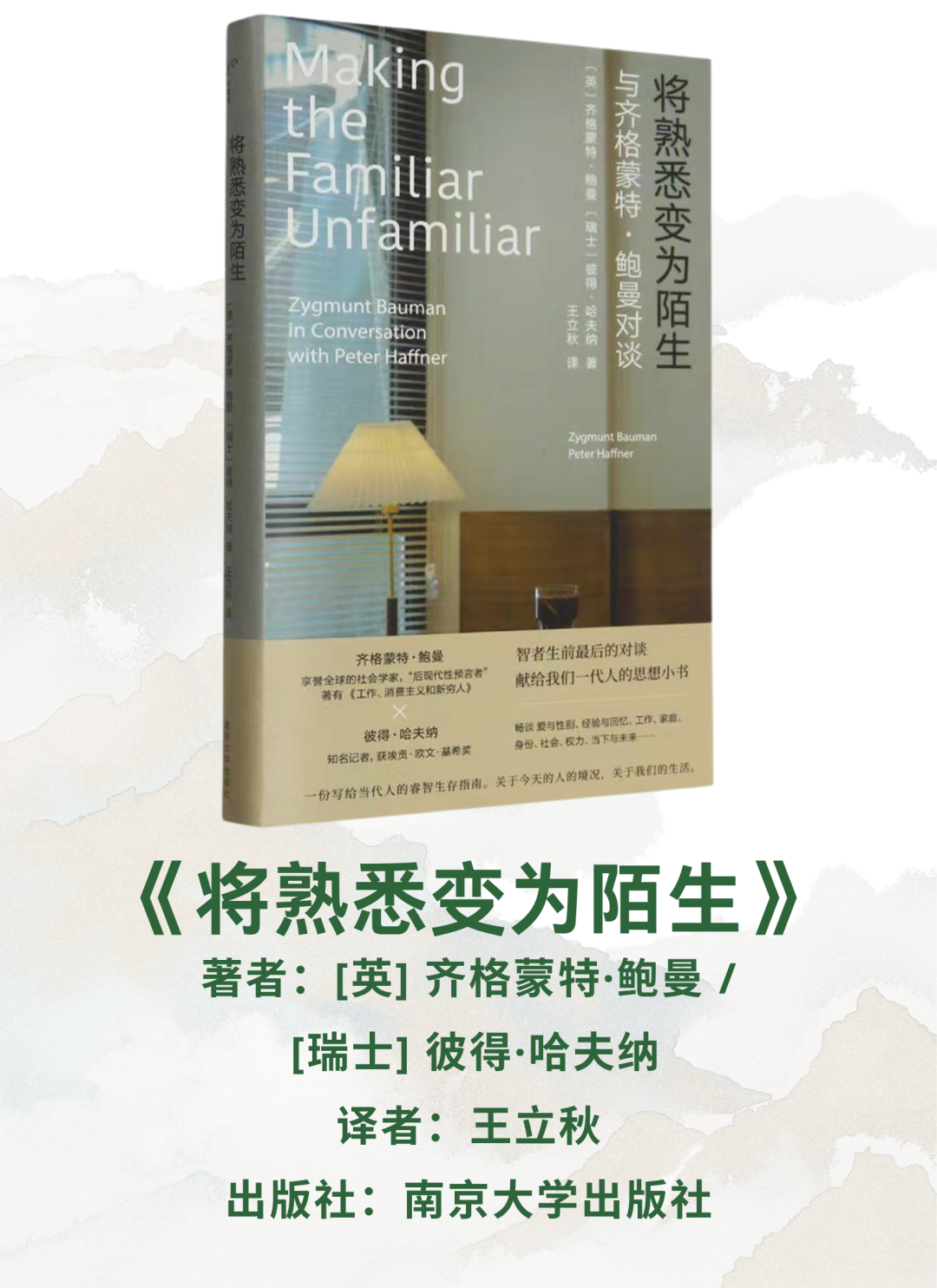 《将熟悉变为陌生》以记者哈夫纳2014年和2016年在齐格蒙特·鲍曼家中的谈话为基础,综合了鲍曼提供的思考笔记与材料,形成的一本对谈录。对我来说这本书更像是一本鲍曼导读——鲍曼自己对自己的导读。一方面讲述了自己的人生经历,作为波兰人、犹太人、社会主义者、流亡者、社会学家、丈夫、儿子的一生。从他的人生我们也能窥见历史的时代的洪流。另一方面浓缩了他毕生的思想研究,很多已在他著作中反复提及的观点(现代性、消费主义、资本主义、乌托邦、剩余之人……),在更新了的流动时代被再次凝练。如果没有读过鲍曼,这是一次很好的走进这位20世纪最伟大的社会学家之一的契机。如果读过鲍曼,这本书也能让人感受到学术著作之外,他作为知识分子的良心与悲悯,以及面对这个绝不是最好世界的谦卑与遗憾。