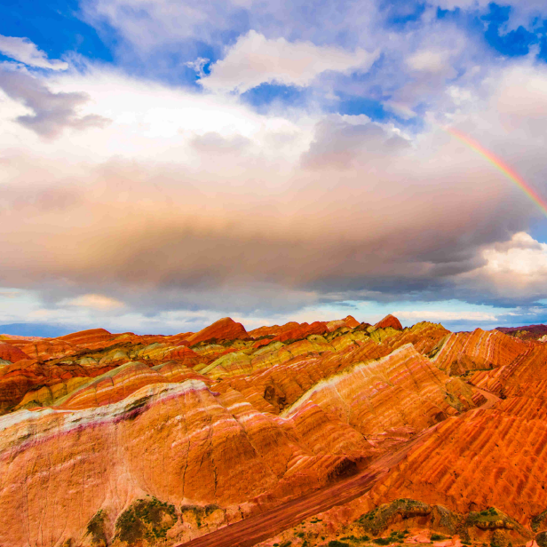 抵达甘肃境内,我们来到张掖的丹霞地貌区。这片色彩斑斓的群山宛如一幅幅天然画卷,奇特的地貌和丰富的色彩让人叹为观止。在这里,你可以拍出绝美的自然风光照片。