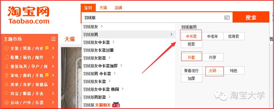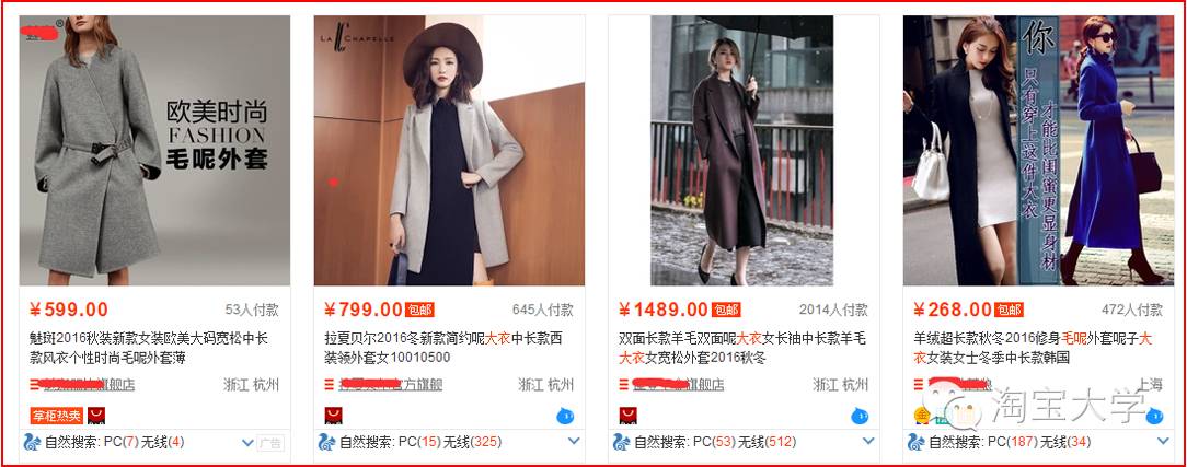 举例:一款“毛呢大衣”标题中加上羽绒服行不行?肯定是不行的,因为你的类目属性就不对,是不会有展现的,所以在写标题的时候一定要注意商品的类目属性匹配度,是什么属性就写什么属性,千万不要因为某个词搜索度高我就拿来用这个词,这个想法是错误的。再次强调下,搜索度高的词是基于和自身宝贝匹配的基础上才可以拿来用!