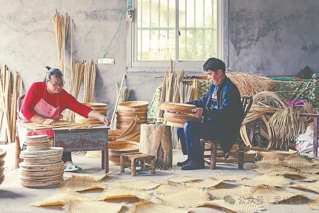 在下郑村,竹编工艺逐渐形成男眷负责拼装、女眷负责编织的分工协作生产方式。 陈剑伟 摄