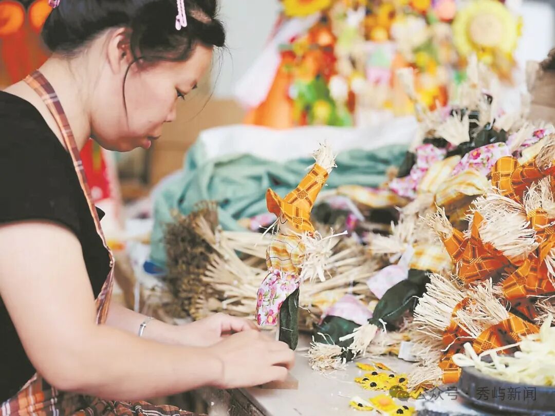 生产车间内,9名女工正在为稻草制作的人偶、兔子“穿衣打扮”,待装饰好后再送往另一楼层进行硬纸装订打包。“这些活我干了很多年了,很轻松,只要工厂有需要,我每天都来,就算这家的活全部做完,我也能去隔壁厂里再干一些。”70岁的林美金在厂里负责商品装订,老人的儿孙在外务工发展,自己每天在家附近的华源工艺工作8小时,可赚七八十元工钱补贴家用,还能午休,乐此不疲。和林美金一样因草编产业受益的,还有周边的黄石、北高、东庄等乡镇的留守妇女。林瑞珍告诉记者,因稻草玩偶制作简单,各类零配件通常通过外发的形式,由周边的村民领取回家制作,按期交付工厂,每年可带动零工5000多人。当前,农村“空心化”“老龄化”问题日益突出,成为乡村振兴发展难题。然而在下郑村,小小草编串起了“整村就业”的好光景。下郑村由下郑、官埔等4个自然村组成,共有村民1224户5435人,常住人口3532人,中青年大多在广东、江苏等地经商或务工,留守老人、妇女较多。“在我们村,只要愿意做活,基本人人都有事干。”林向前说,村里的几个草编企业,招收的工人基本是本村的妇女群体,用工饱和后,又向周边村居辐射,仅一个万圣节,全村草编企业的订单额就可达到7000万元,用工人数超千人。秋日的“花城”广州,聚集了来自世界各地的外国客商。刚刚落幕的第136届广交会上,超过3万家企业线下参展,其中就有来自下郑村的合盛、章兴、下郑工艺厂等多家草竹编工艺品企业。实际上,早在1950年举办的第一届广交会上,下郑村就组织了一大批老手艺人,带着引以为傲的草竹编产品亮相参展,并以展会为契机打开了国外市场。莆田市合盛工艺品有限公司是莆田规模最大的草编工艺品企业,在全市有多处工厂、2000多名工人,产品主要出口美国,年产值1亿多元。在今年的广交会上,合盛还推出了全新的节庆玩偶产品。“和国内情况一样,西方人的消费结构在改变,早期时兴的稻草人摆件已经渐渐不那么流行了,针对年轻人的喜好,我们开始尝试生产塑胶玩偶、充气玩偶适应市场,迎接新一代消费主力军。”公司负责人、“下郑竹编工艺”代表性传承人林建春告诉记者,随着现代人生活习惯的改变,传统的草竹编产业也将走下坡路,与时俱进、另辟蹊径,开发新的产品迫在眉睫。出身草竹编工艺世家的林建春,对正在远去的古老技艺十分痛惜。他计划着,在退休后开办一间草竹编工艺传习所,研发一些诸如吊灯、家具、拎包等符合年轻人审美的实用产品,同时也希望同有关部门、高校联动,推陈出新,把非遗技艺通过生活化改造留在当下,让略显沉寂的草竹编技艺重焕光彩。(陈汉儿 陈世玉 林禧香)