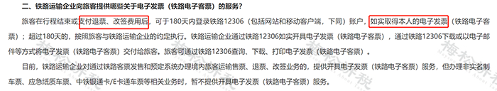四、旅客在行程结束或支付退票、改签费用后,可通过铁路12306(包括网站和移动客户端,下同)如实取得电子发票(铁路电子客票)。铁路运输企业根据旅客提供的购买方名称、统一社会信用代码和行程信息等如实开具电子发票(铁路电子客票)。