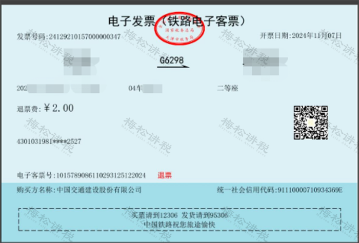 2.自2024年11月1日起,旅客在行程结束或支付退票、改签费用后,可通过铁路12306如实取得电子发票(铁路电子客票),而铁路电子客票申报进项税额按规定填写在《增值税及附加税费申报表附列资料(二)》(本期进项税额明细)“认证相符的增值税专用发票”,应该是按增值税专用发票“对待”,且系统能按规定勾选退票费的铁路电子客票。