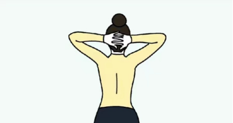 ①双手交叉放置到后脑勺,并将头缓慢后仰