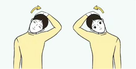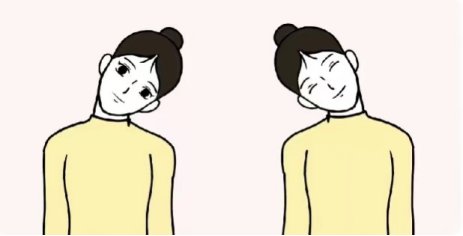 ①头部缓慢向左屈至最大幅度,停留3-5秒