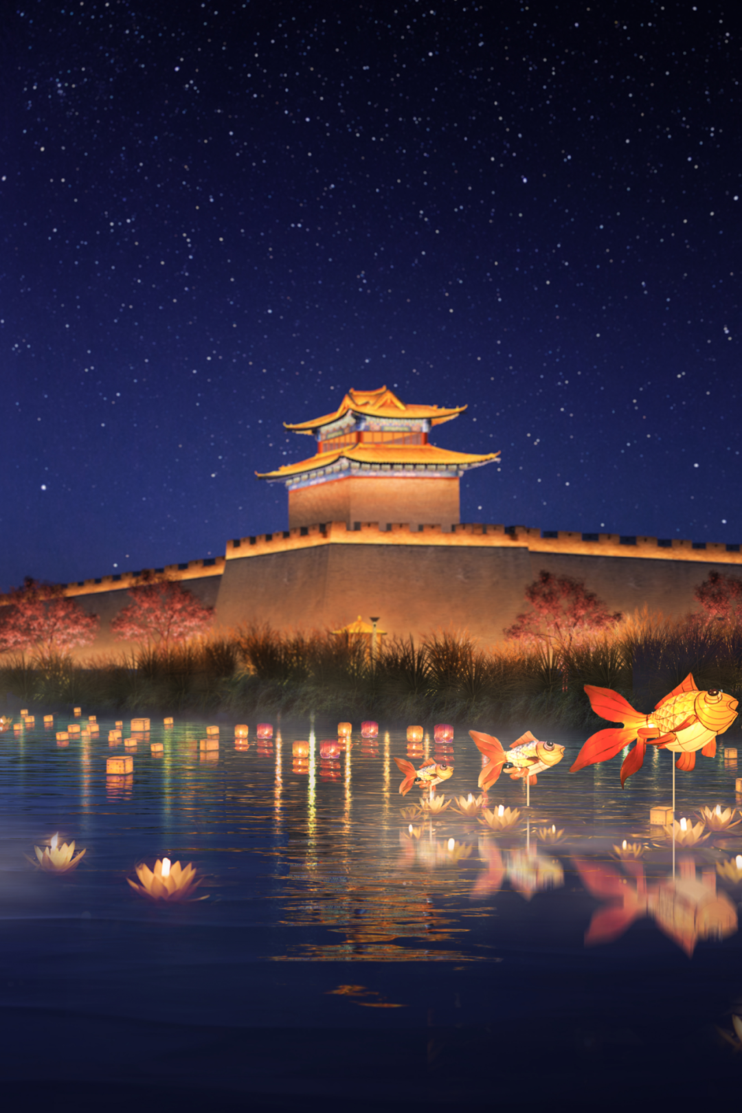 古城河畔的夜 灯火璀璨