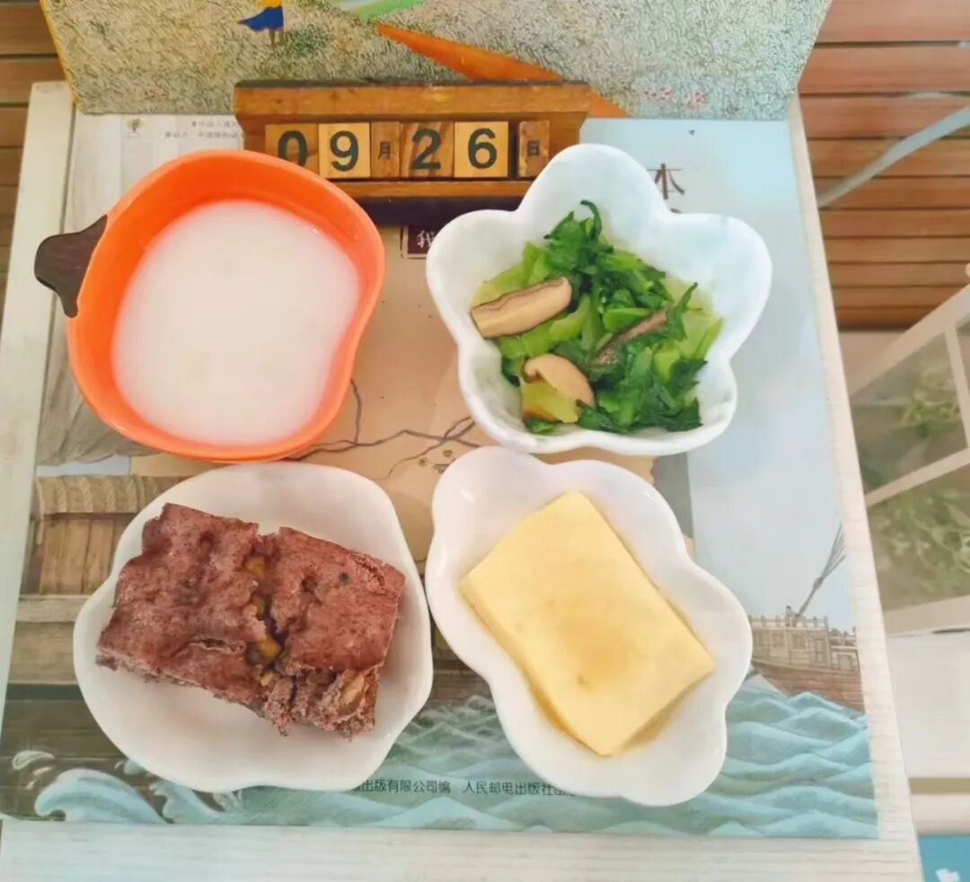 早餐:奶香燕麦粥 黑米核桃发糕