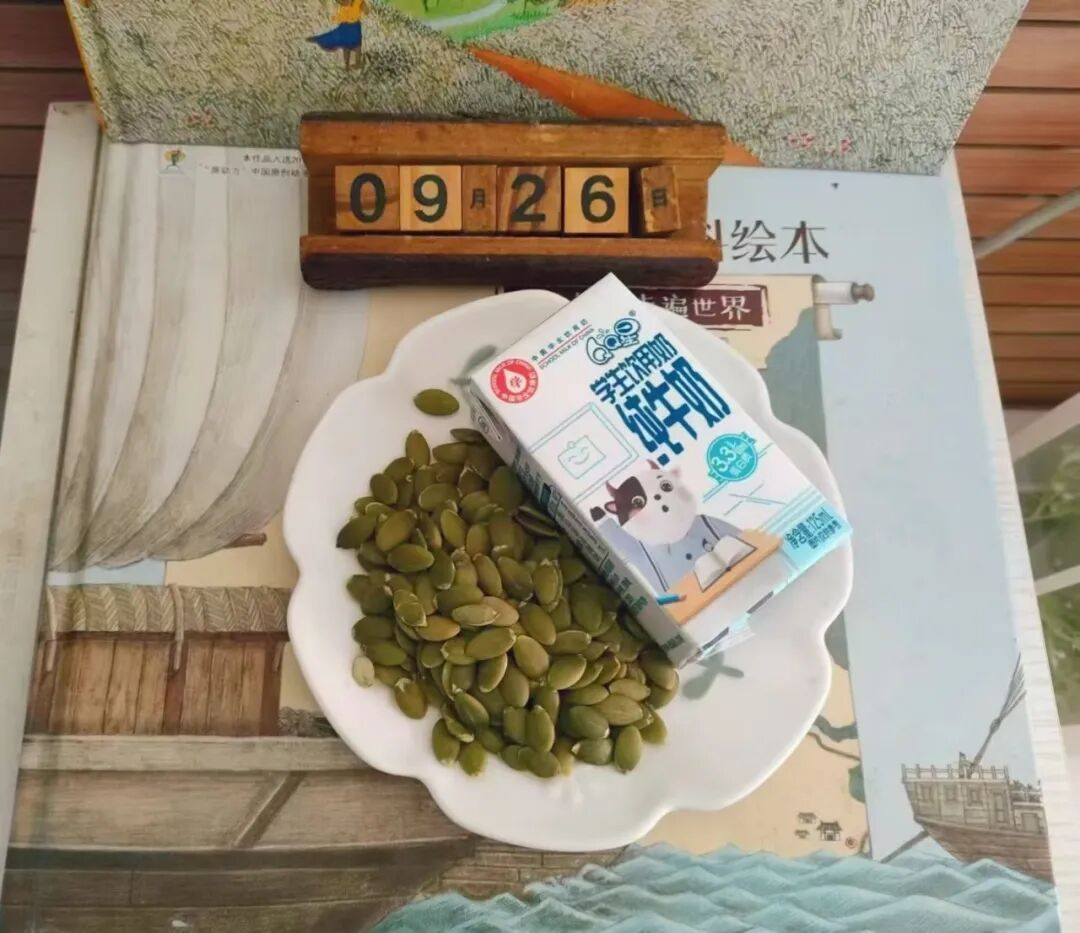 午点:纯牛奶 南瓜子仁