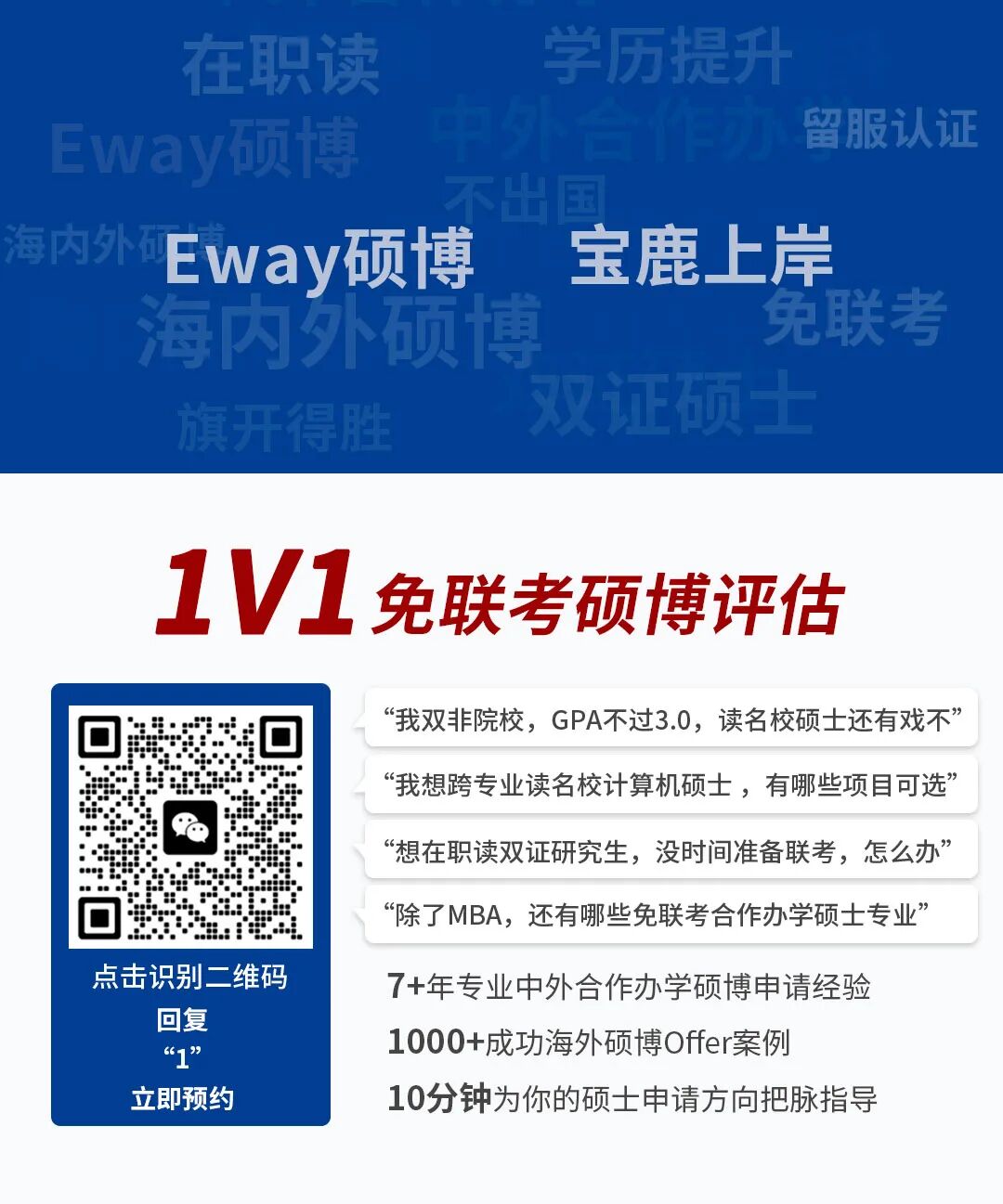 Eway升学为解决硕博升学、研究生留学移民、留学落户(高中生本科留学)等升学需求,以及每一位学员的升学问题。