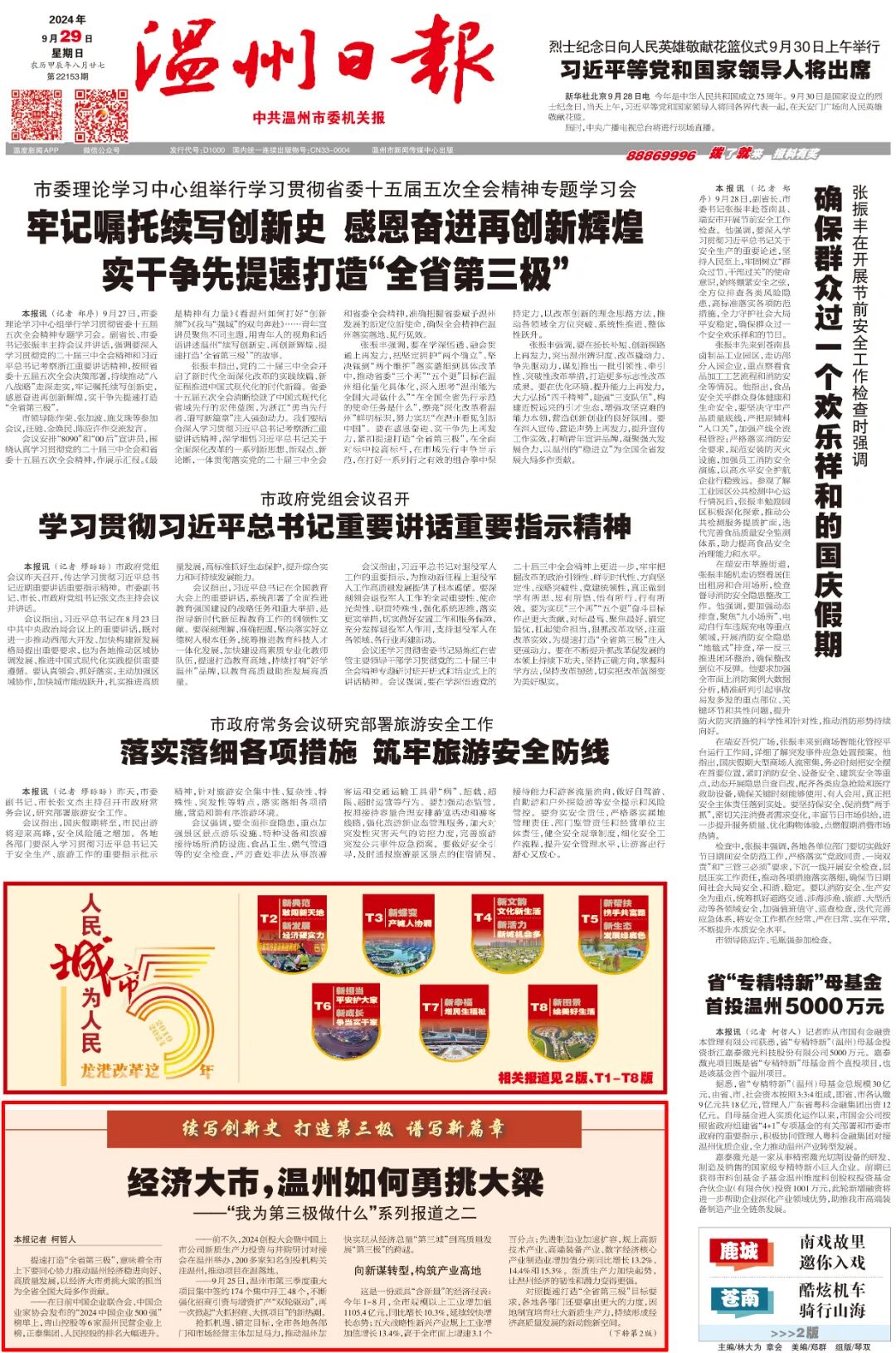 9月29日,《温州日报》1版转2版综合报道《经济大市,温州如何勇挑大梁——“我为第三极做什么”系列报道之二》