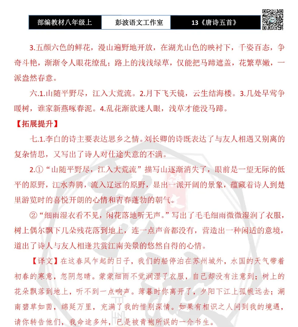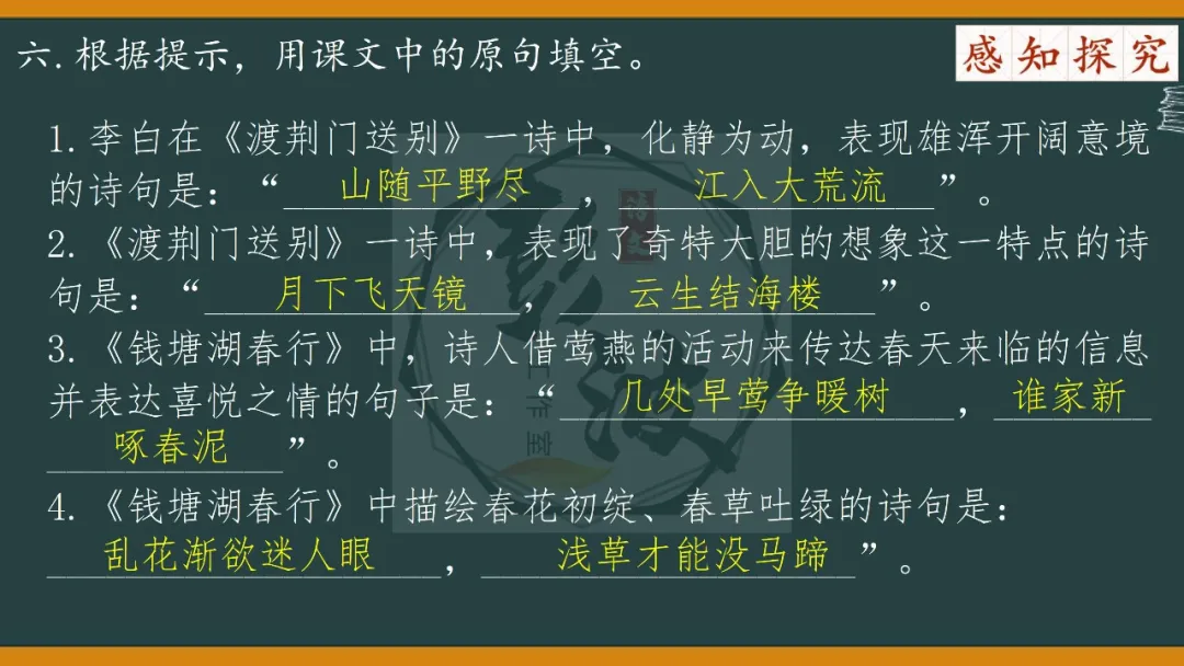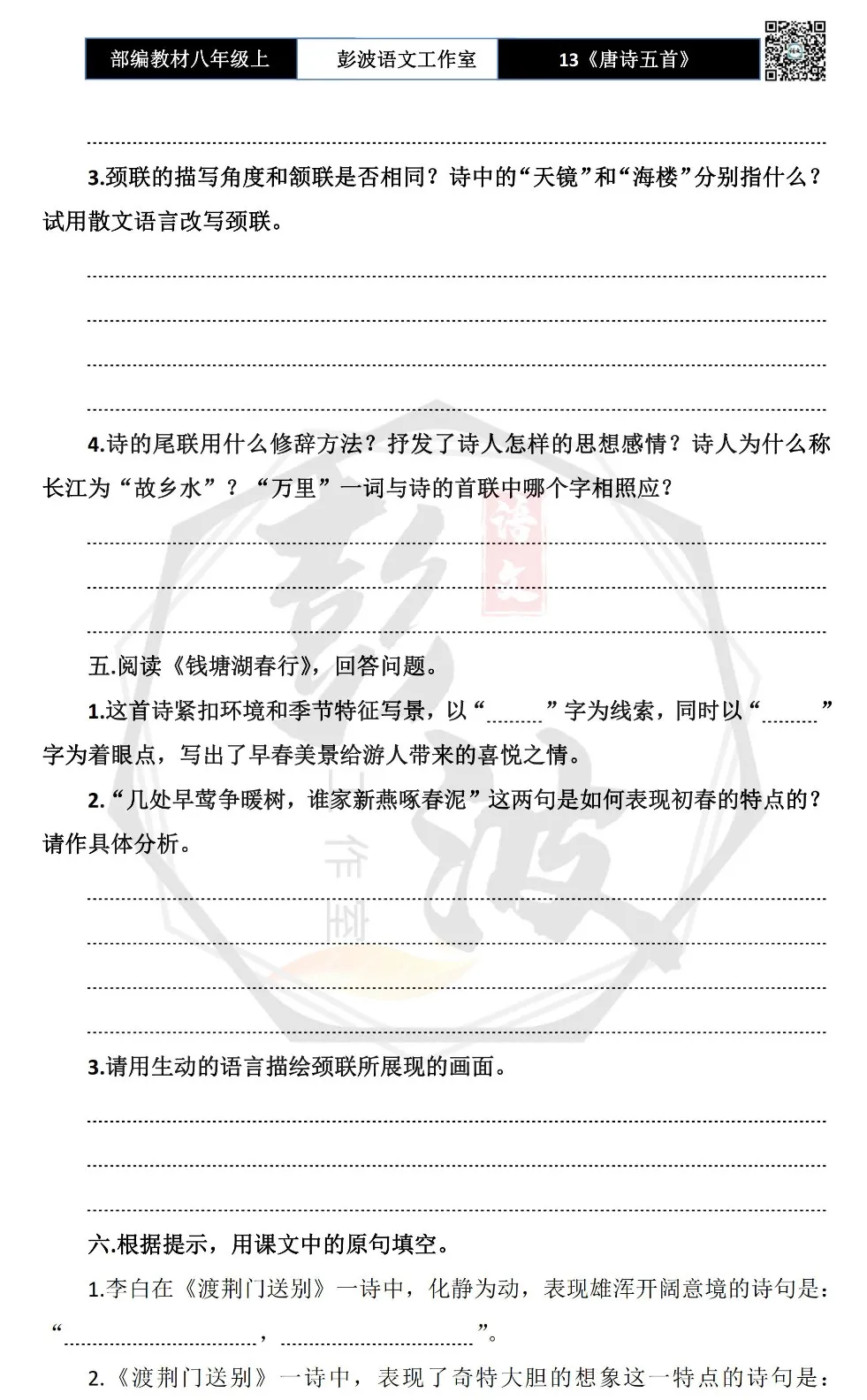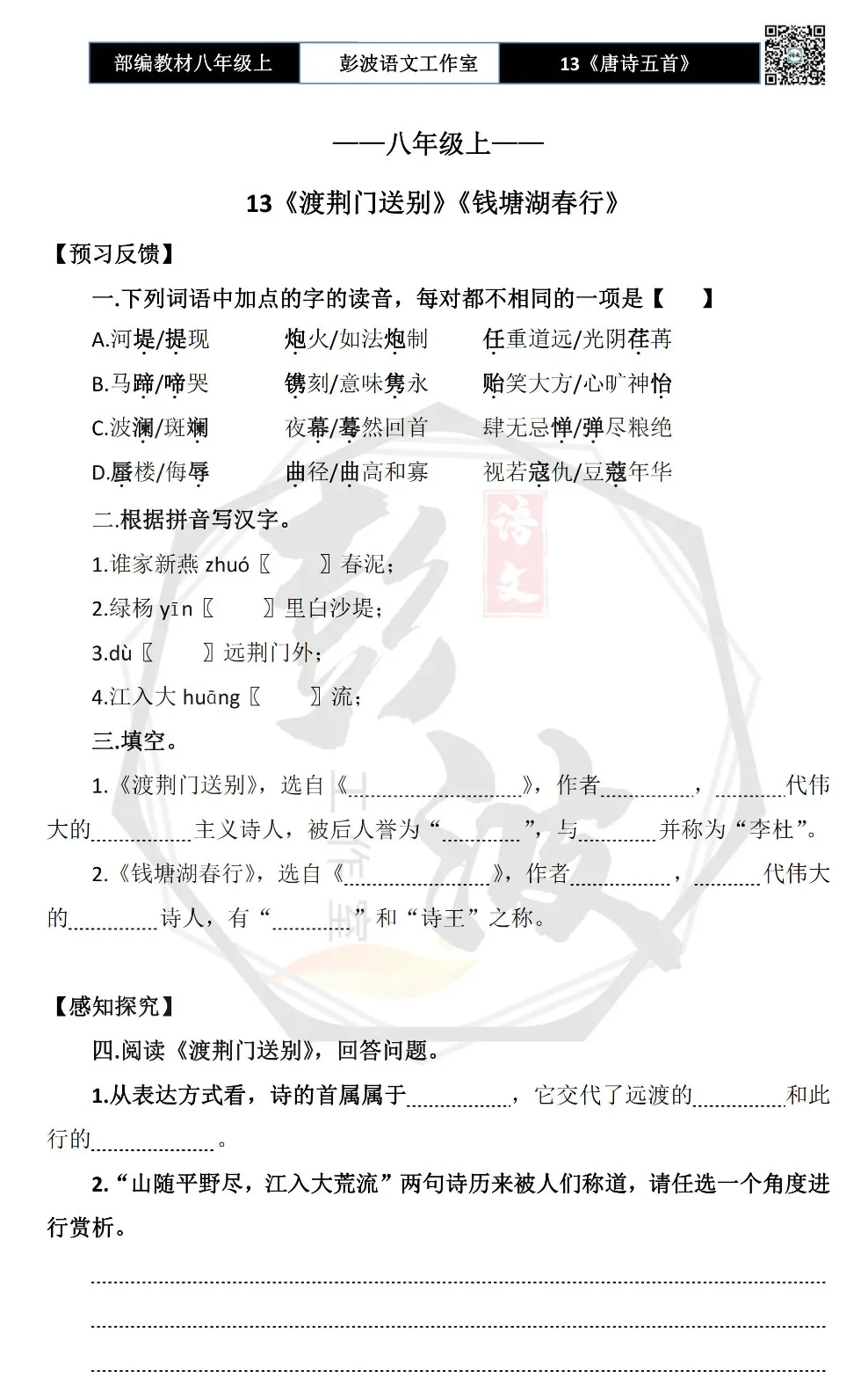 【部编教材八年级上】13-4-5《渡荆门送别》《钱塘湖春行》 | 学案WORD+学案PPT(自学好帮手)