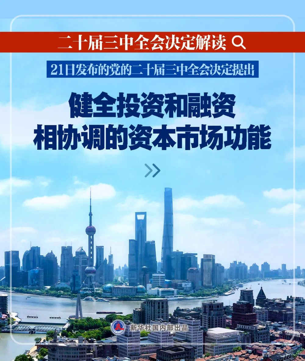 新华社北京7月21日电(记者刘慧、吴雨)《中共中央关于进一步全面深化改革、推进中国式现代化的决定》21日发布。决定就深化金融体制改革进行一系列部署,作出制定金融法、加快完善中央银行制度、健全投资和融资相协调的资本市场功能等安排。“支持长期资金入市”“提高上市公司质量,强化上市公司监管和退市制度”“建立增强资本市场内在稳定性长效机制”“完善上市公司分红激励约束机制”……决定围绕促进资本市场健康稳定发展提出系列举措。“从投资端和融资端入手,用改革的办法破解制约资本市场平稳健康发展的深层次矛盾和问题,有助于完善资本市场功能,增强资本市场内在稳定性。”国家金融与发展实验室副主任曾刚说。决定还提出,加快完善中央银行制度,畅通货币政策传导机制。积极发展科技金融、绿色金融、普惠金融、养老金融、数字金融,加强对重大战略、重点领域、薄弱环节的优质金融服务。完善金融机构定位和治理,健全服务实体经济的激励约束机制。发展多元股权融资,加快多层次债券市场发展,提高直接融资比重。优化国有金融资本管理体制。此外,在完善金融监管体系方面,决定明确,依法将所有金融活动纳入监管,强化监管责任和问责制度,加强中央和地方监管协同。建设安全高效的金融基础设施,统一金融市场登记托管、结算清算规则制度,建立风险早期纠正硬约束制度,筑牢有效防控系统性风险的金融稳定保障体系。健全金融消费者保护和打击非法金融活动机制,构建产业资本和金融资本“防火墙”。曾刚表示,金融领域改革是我国全面深化改革的重要组成部分。党的二十届三中全会对深化金融体制改革作出前瞻性、系统性的顶层设计,推动金融高质量发展、加快建设金融强国,不断开创新时代金融工作新局面。