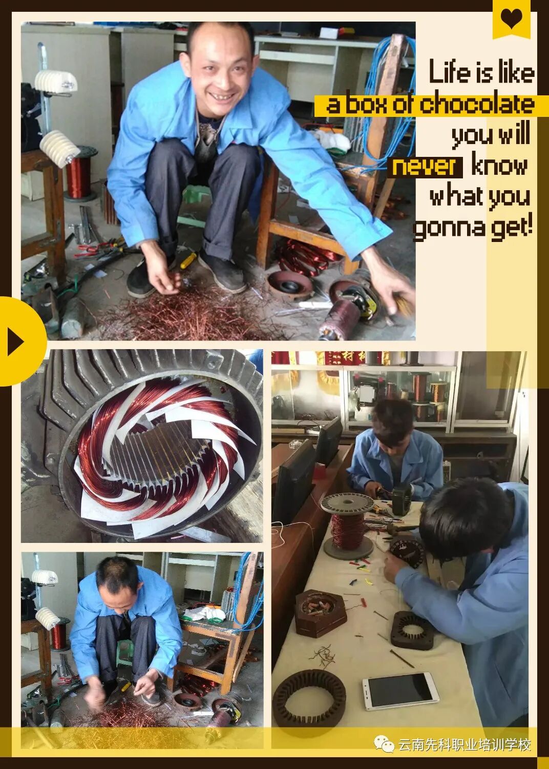 讲三相异步电动机的构造,分类,工作原理。电动机常用维修材料、绝缘材料、漆包线规格。电动机专业术语,绕线步骤,单层链式、叠式、交叉式、同芯式、双层叠式、单双层混合式、大功率多路支路并联绕阻特点。电动机名牌浸漆与烘烤工艺。拆除旧绕阻方法、无铭牌空壳电动机定子绕阻重绕计算。电动机常见故障与维修、电动机连接方式。单相电动机的构造、工作原理、启动方式、绕线步骤。单层链式、叠式、交叉式、同芯式、双层链式、正弦绕阻特点、串激式电动机特点、接线方式、电枢绕阻平面层展开图。直流电动机的构造、工作原理、特点、电枢绕阻布线方法。报名电话0871-65131138!